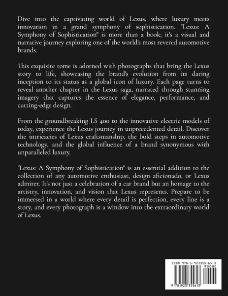 Dive into the captivating world of Lexus, where luxury meets innovation in a grand symphony of sophistication. "Lexus: A Symphony of Sophistication" is more than a book; it's a visual and narrative journey exploring one of the world's most revered automotive brands. This exquisite tome is adorned with photographs that bring the Lexus story to life, showcasing the brand's evolution from its daring inception to its status as a global icon of luxury. Each page turns to reveal another chapter in the Lexus saga, narrated through stunning imagery that captures the essence of elegance, performance, and cutting-edge design. From the groundbreaking LS 400 to the innovative electric models of today, experience the Lexus journey in unprecedented detail. Discover the intricacies of Lexus craftsmanship, the bold steps in automotive technology, and the global influence of a brand synonymous with unparalleled luxury. "Lexus: A Symphony of Sophistication" is an essential addition to the collection of any automotive enthusiast, design aficionado, or Lexus admirer. It's not just a celebration of a car brand but an homage to the artistry, innovation, and vision that Lexus represents. Prepare to be immersed in a world where every detail is perfection, every line is a story, and every photograph is a window into the extraordinary world of Lexus.