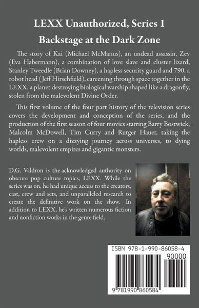 LEXX Unauthorized - The story of Kai (Michael McManus), an undead assassin, Zev (Eva Habermann), a combination of love slave and cluster lizard, Stanley Tweedle (Brian Downey), a hapless security guard and 790, a robot head (Jeff Hirschfield), careening through space together in the LEXX, a planet destroying biological warship shaped like a dragonfly, stolen from the malevolent Divine Order. This first volume of the four part history of the television series covers the development and conception of the series, and the production of the first season of four movies starring Barry Bostwick, Malcolm McDowell, Tim Curry and Rutger Hauer, taking the hapless crew on a dizzying journey across universes, to dying worlds, confronting past and future, malevolent empires and gigantic monsters. LEXX was one of the strangest and most wildly surreal space operas ever conceived, owing as much to Luis Bunuel and Alejandro Jodorowsky as to to Star Trek and Star Wars. It was unique and unforgettable, mixing black comedy and absurdism with epic drama, and an astonishing visual sense. Backstage, the story of the creation of the series was even more extraordinary, a tale of regional Atlantic film makers, renegade artists, American corporate takeovers, Canadian cultural nationalism, German entrepreneurs and new computer generated imagery technologies intersecting in wildly unpredictable ways, to give birth to the show. The product of years of research and dozens of interviews, this is a 'must buy' for any fan of the show itself or of science fiction movies television generally, and an eye opening insight into film and television production, especially Canadian and international productions.