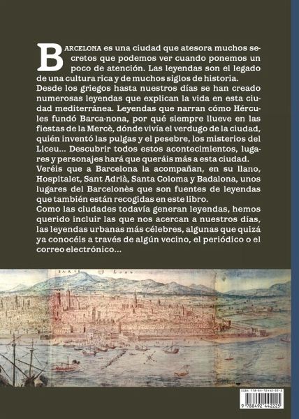 Barcelona es una ciudad que atesora muchos secretos; sólo hay que prestar un poco de atención para verlos. Esta obra ofrece una selección de leyendas que nos permiten descubrir la cotidianeidad de otros tiempos, la vida, los personajes y el pasado de la ciudad de Barcelona, con la intención de que el lector aprecie una nueva visión de esta ciudad mediterránea. Las leyendas son el legado de una cultura rica y de muchos siglos de historia. Desde los griegos hasta nuestros días se han creado numerosas leyendas que explican la vida en esta ciudad mediterránea. Leyendas que narran cómo Hércules fundó Barca-nona, por qué siempre llueve en las fiestas de la Mercè, dónde vivía el verdugo de la ciudad, quién inventó las pulgas y el pesebre, los misterios del Liceu... Descubrir todos estos acontecimientos, lugares y personajes hará que queráis más a esta ciudad. Veréis que a Barcelona la acompañan, en su llano, Hospitalet, Sant Adrià, Santa Coloma y Badalona, unos lugares del Barcelonès que son fuentes de leyendas que también están recogidas en este libro. Como las ciudades todavía generan leyendas, hemos querido incluir las que nos acercan a nuestros días, las leyendas urbanas más célebres, algunas que quizá ya conocéis a través de algún vecino, el periódico o el correo electrónico....