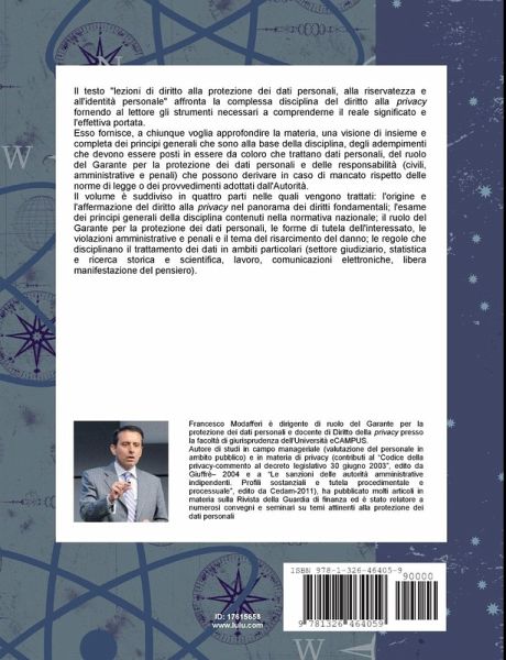 Il testo "lezioni di diritto alla protezione dei dati personali, alla riservatezza e all'identità personale" affronta la complessa disciplina del diritto alla privacy fornendo al lettore gli strumenti necessari a comprenderne il reale significato e l'effettiva portata. Il volume è suddiviso in quattro parti che trattano approfonditamente: l'origine e l'affermazione del diritto alla privacy nel panorama dei diritti fondamentali; l'esame dei principi generali della disciplina contenuti nella normativa nazionale; il ruolo del garante, le forme di tutela dell'interessato, le violazioni amministrative e penali; le regole che disciplinano il trattamento dei dati in ambiti particolari (settore giudiziario, statistica e ricerca storica e scientifica, lavoro, comunicazioni elettroniche, libera manifestazione del pensiero).