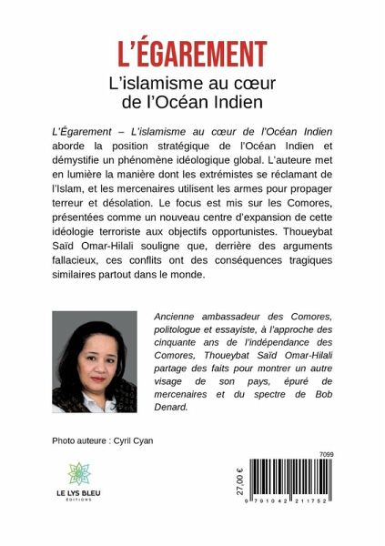 L¿Égarement ¿ L¿islamisme au c¿ur de l¿Océan Indien aborde la position stratégique de l¿Océan Indien et démystifie un phénomène idéologique global. L¿auteure met en lumière la manière dont les extrémistes se réclamant de l¿Islam, et les mercenaires utilisent les armes pour propager terreur et désolation. Le focus est mis sur les Comores, présentées comme un nouveau centre d¿expansion de cette idéologie terroriste aux objectifs opportunistes. Thoueybat Saïd Omar-Hilali souligne que, derrière des arguments fallacieux, ces conflits ont des conséquences tragiques similaires partout dans le monde.