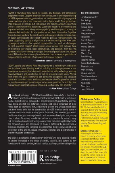 LGBT Identity and Online New Media examines constructions of LGBT identity within new media. The contributors consider the effects, issues, influences, benefits and disadvantages of these new media phenomena with respect to the construction of LGBT identities. A wide range of mainstream and independent new media are analyzed, including MySpace, Facebook, YouTube, gay men's health websites, message boards, and Craigslist ads, among others. This is a pioneering interdisciplinary collection that is essential reading for anyone interested in the intersections of gender, sexuality, and technology.
