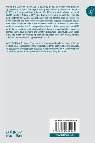 During the 2010s in Turkey, LGBTQ activists, groups, and individuals persisted against social, political, and legal adversity. Erasure during the Gezi Park Protests in 2013, a Pride parade ban in Istanbul in 2016, and indefinite ban on all LGBTQ events in Ankara in 2017 directly aimed at ending the activities, visibility, and existence of LGBTQ organization in the two biggest cities in Turkey. This work examines the ways in which LGBTQ activists engaged in talkback against these restrictions that impacted the lives of LGBTQ individuals and how said individuals endured such adversity. Focusing on the elements of discourse used by LGBTQ activists, this work argues oppositional discourses need to address as well as remedy the various elements of normative discourses-constructions of space, time, and affect-in order to be deemed a talkback, instead of merely perpetuating the normativities of oppressive discourses.