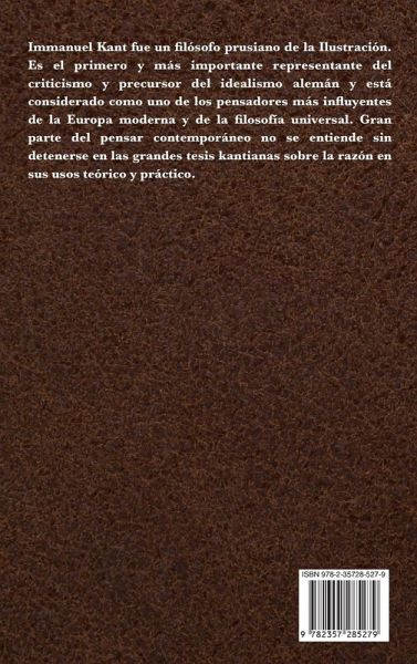 Más de un libro habría sido mucho más claro si no hubiera querido ser tan enteramente claro._KANT Immanuel Kant fue un filósofo prusiano de la Ilustración. Es el primero y más importante representante del criticismo y precursor del idealismo alemán y está considerado como uno de los pensadores más influyentes de la Europa moderna y de la filosofía universal. Gran parte del pensar contemporáneo no se entiende sin detenerse en las grandes tesis kantianas sobre la razón en sus usos teórico y práctico.