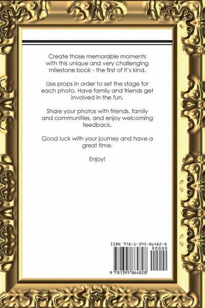 Create those memorable moments with this unique and very challenging milestone book - the first of it's kind. Use props in order to set the stage for each photo. Have family and friends get involved in the fun. Share your photos with friends, family and communities, and enjoy welcoming feedback. Good luck with your journey and have a great time. Enjoy!