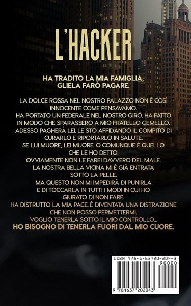 La dolce rossa nel nostro palazzo non è così innocente come pensavamo. Ha portato un federale nel nostro giro. Ha fatto in modo che sparassero a mio fratello gemello. Adesso pagherà lei. Le sto affidando il compito di curarlo e riportarlo in salute. Se lui muore, lei muore. O comunque così le ho detto. Ovviamente non le farei davvero del male. La nostra bella vicina mi è già entrata sottopelle. Ma questo non mi impedirà di punirla e di toccarla in tutti i modi in cui ho giurato di non fare. Ha distrutto la mia pace. È diventata una distrazione che non posso permettermi. Voglio tenerla sotto il mio controllo... Ho bisogno di tenerla fuori dal mio cuore.