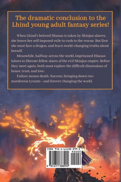The dramatic conclusion to the Lhind young adult fantasy series!When Lhind's beloved Hlanan is taken by Shinjan slavers, she leaves her self-imposed exile to rush to the rescue. But first she must face a dragon, and learn world-changing truths about herself.Meanwhile, halfway across the world, imprisoned Hlanan labors to liberate fellow slaves of the evil Shinjan empire.Before they meet again, both must explore the difficult dimensions of honor, trust, and love.Failure means death. Success, bringing down two murderous tyrants-and forever changing the world.