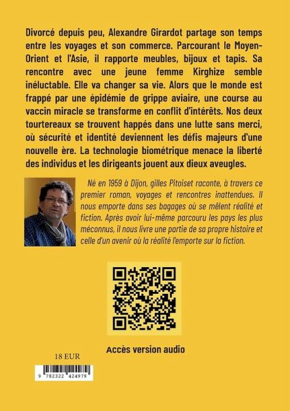 Divorcé depuis peu, Alexandre Girardot partage son temps entre les voyages et son commerce. Parcourant le Moyen-Orient et l'Asie, il rapporte meubles, bijoux et tapis. Sa rencontre avec une jeune femme Kirghize semble inéluctable. Elle va changer sa vie. Alors que le monde est frappé par une épidémie de grippe aviaire, une course au vaccin miracle se transforme en conflit d'intérêts. Nos deux tourtereaux se trouvent happés dans une lutte sans merci, où sécurité et identité deviennent les défis majeurs d'une nouvelle ère. La technologie biométrique menace la liberté des individus et les dirigeants jouent aux dieux aveugles.