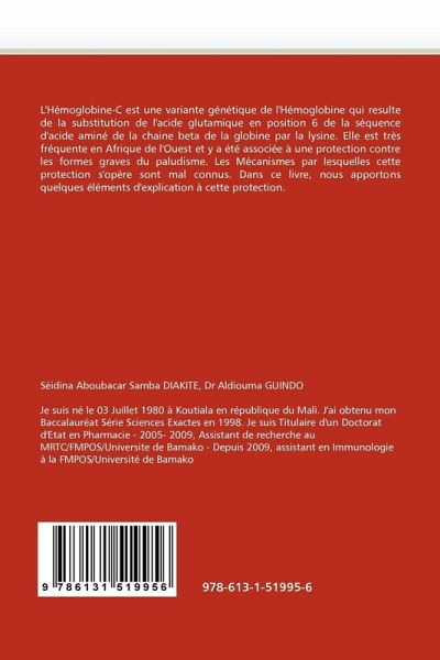 L'Hémoglobine-C est une variante génétique de l'Hémoglobine qui resulte de la substitution de l'acide glutamique en position 6 de la séquence d'acide aminé de la chaine beta de la globine par la lysine. Elle est très fréquente en Afrique de l'Ouest et y a été associée à une protection contre les formes graves du paludisme. Les Mécanismes par lesquelles cette protection s'opére sont mal connus. Dans ce livre, nous apportons quelques éléments d'explication à cette protection.