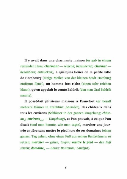 Entdecken Sie die Welt der Fremdsprachen auf eine ganz neue Weise mit der Lesemethode von Ilya Frank, perfekt für alle ab dem Sprachniveau A2. Diese innovative Methode kombiniert Originaltexte mit klaren, direkten Übersetzungen und bietet zusätzliche Erläuterungen direkt im Lesefluss, um ein tiefes Verständnis und schnelles Lernen zu fördern. Ob Sie Ihre Sprachkenntnisse verbessern oder in eine neue Sprache eintauchen möchten, diese Methode bietet ein einzigartiges und effektives Leseerlebnis. Dank der integrierten Hörbücher wird auch das Hörverständnis trainiert. Lesemethode von Ilya Frank ist ideal für alle, die ihre Sprachkenntnisse effektiv erweitern wollen, ohne den natürlichen Lesefluss zu unterbrechen. L'homme sans larmes - Ein mysteriöses und fesselndes Märchen In einer prächtigen Villa nahe der kleinen Stadt Hombourg lebt der wohlhabende Comte Baldrik, dem es an nichts zu fehlen scheint - außer an Tränen. Seit Generationen lastet ein grausamer Fluch auf seiner Familie, der ihm die Fähigkeit zu weinen genommen hat. Weder Freude noch Schmerz können seine Augen zum Tränen bringen, und sein Herz droht unter der Last der unterdrückten Emotionen zu zerbrechen. Doch es gibt Hoffnung: Lia, seine liebevolle Tochter, macht sich auf eine abenteuerliche Reise, um das Geheimnis der Tränen zu lüften und ihren Vater zu retten. Ihre Suche führt sie tief in die Wälder zu einem alten Einsiedler und sogar in die magischen Reiche der Träume, wo sie mit himmlischen Wesen spricht und lernt, dass nur eine besondere Perle den Fluch brechen kann. L'homme sans larmes ist ein mitreißendes Märchen über Liebe, Opferbereitschaft und die tiefsten Gefühle des menschlichen Herzens. Mit einer Mischung aus fantastischen Elementen und emotionaler Tiefe wird die Geschichte Leser jeden Alters verzaubern und berühren. Erleben Sie die bewegende Geschichte von Comte Baldrik und seiner mutigen Tochter Lia, und entdecken Sie, ob es ihnen gelingt, die Tränen zurückzubringen und das Herz des Comte zu retten. Ungekürzter Originaltext. Zweisprachiges Buch Französisch-Deutsch.Innovative Lesemethode: https://easyoriginal.com/lesemethode/Leseprobe: https://easyoriginal.com/leseproben/DF26.pdf