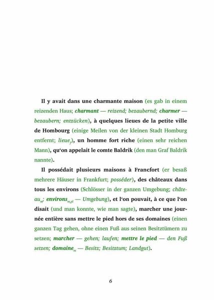 Entdecken Sie die Welt der Fremdsprachen auf eine ganz neue Weise mit der Lesemethode von Ilya Frank, perfekt für alle ab dem Sprachniveau A2. Diese innovative Methode kombiniert Originaltexte mit klaren, direkten Übersetzungen und bietet zusätzliche Erläuterungen direkt im Lesefluss, um ein tiefes Verständnis und schnelles Lernen zu fördern. Ob Sie Ihre Sprachkenntnisse verbessern oder in eine neue Sprache eintauchen möchten, diese Methode bietet ein einzigartiges und effektives Leseerlebnis. Dank der integrierten Hörbücher wird auch das Hörverständnis trainiert. Lesemethode von Ilya Frank ist ideal für alle, die ihre Sprachkenntnisse effektiv erweitern wollen, ohne den natürlichen Lesefluss zu unterbrechen. L'homme sans larmes - Ein mysteriöses und fesselndes Märchen In einer prächtigen Villa nahe der kleinen Stadt Hombourg lebt der wohlhabende Comte Baldrik, dem es an nichts zu fehlen scheint - außer an Tränen. Seit Generationen lastet ein grausamer Fluch auf seiner Familie, der ihm die Fähigkeit zu weinen genommen hat. Weder Freude noch Schmerz können seine Augen zum Tränen bringen, und sein Herz droht unter der Last der unterdrückten Emotionen zu zerbrechen. Doch es gibt Hoffnung: Lia, seine liebevolle Tochter, macht sich auf eine abenteuerliche Reise, um das Geheimnis der Tränen zu lüften und ihren Vater zu retten. Ihre Suche führt sie tief in die Wälder zu einem alten Einsiedler und sogar in die magischen Reiche der Träume, wo sie mit himmlischen Wesen spricht und lernt, dass nur eine besondere Perle den Fluch brechen kann. L'homme sans larmes ist ein mitreißendes Märchen über Liebe, Opferbereitschaft und die tiefsten Gefühle des menschlichen Herzens. Mit einer Mischung aus fantastischen Elementen und emotionaler Tiefe wird die Geschichte Leser jeden Alters verzaubern und berühren. Erleben Sie die bewegende Geschichte von Comte Baldrik und seiner mutigen Tochter Lia, und entdecken Sie, ob es ihnen gelingt, die Tränen zurückzubringen und das Herz des Comte zu retten. Ungekürzter Originaltext. Zweisprachiges Buch Französisch-Deutsch.Innovative Lesemethode: https://easyoriginal.com/lesemethode/Leseprobe: https://easyoriginal.com/leseproben/DF26.pdf