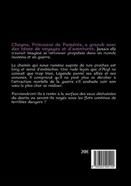 Cheyna, Princesse de Pamérés, a grandi avec des rêves de voyages et d'aventures. Jamais elle n'aurait imaginé se retrouver propulsée dans un monde inconnu et en guerre.Le chemin qui nous ramène auprès de nos proches est long et semé d'embûches. Une rude leçon que d'Acyl ne connaît que trop bien. Légende parmi ses alliés et ses ennemis, il comprend qu'il ne peut plus se dérober à l'attraction mortelle de la guerre s'il souhaite voir son voeu le plus cher se réaliser.Parviendront-ils à rester à la surface des eaux déchaînées du destin ou seront-ils noyés sous les flots continus de terribles dangers ?