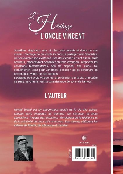 Jonathan, vingt-deux ans, vit chez ses parents et doute de son avenir. L¿héritage de cet oncle inconnu, à partager avec Stanislas, va bouleverser son existence. Les deux cousins n¿ont aucun point commun, mais devront cohabiter en terre étrangère, respecter les conditions testamentaires, afin de disposer des biens. Ce déracinement sera pour Jonathan l¿occasion de se construire en cherchant la vérité sur ses origines. L¿héritage de l¿oncle Vincent est une réflexion sur la vie, une quête de sens, un chemin vers la connaissance de soi et de l¿amour.