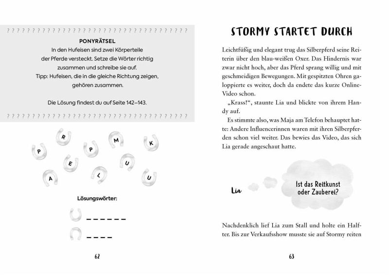 Beste Freundinnen, Ponyglück und eine große Traumpferde-Show - mit den beliebten Social-Media-Stars wird es einfach nie langweilig. Lia und Lea nehmen zwei Pferde aus einem Tierschutzprojekt auf, um sie für den Verkauf bei einer Traumpferde-Show aufzupäppeln und auszubilden - doch bei den Vorbereitungen passiert etwas Unerwartetes. Wirdes den beiden Pferdefreundinnen gelingen, die Silberpferde zu retten? Der interaktiv gestaltete Roman mit kniffligen Mitmachrätseln zum Lösen im Buch ist der perfekte Lesespaß für alle Pferde-Fans ab 8 Jahren.