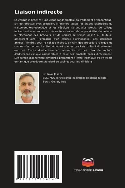 Le collage indirect est une étape fondamentale du traitement orthodontique. S'il est effectué avec précision, il facilitera toutes les étapes ultérieures du traitement orthodontique et les résultats seront plus précis. Le collage indirect est une tendance croissante en raison de la possibilité d'améliorer le placement des brackets et de réduire le temps passé au fauteuil, améliorant ainsi l'efficacité d'un cabinet d'orthodontie. Ces dernières années, l'intérêt pour le collage indirect en tant que procédure clinique de routine s'est accru. Il a été démontré que les brackets collés indirectement ont des forces d'adhérence en laboratoire et des taux de rupture d'adhérence clinique comparables à ceux des brackets collés directement. Des forces d'adhérence similaires permettent à cette technique d'être viable en tant que procédure standard au cabinet pour les cliniciens.