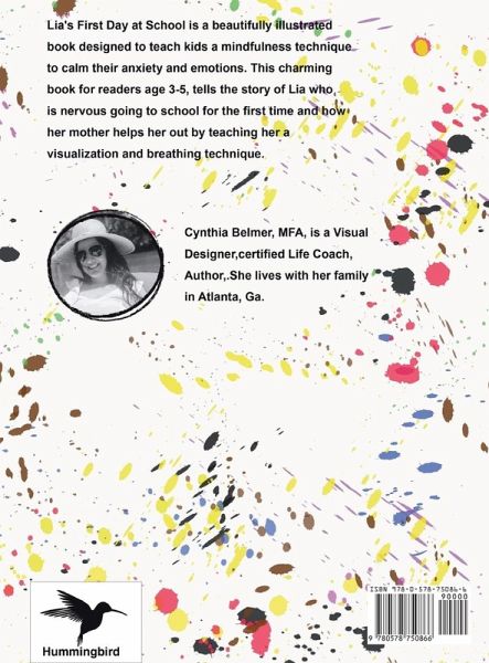 Lia's First Day at School is a beautifully illustrated book designed to teach kids a mindfulness technique to calm their anxiety and emotions. This charming book for readers age 3-5, tells the story of Lia who is nervous going to school for the first time and how her mother helps her out by teaching her a visualization and breathing technique. Studies show that children of all ages can benefit from mindfulness, the simple practice of bringing awareness to the present moment and acceptance of our emotions. It can help parents and caregivers, too, by promoting happiness and relieving stress. In this book, we offer an opportunity for parents and children to learn and practice mindfulness and to practice managing emotions together. Written and illustrated by Cynthia Belmer, this fun and unique book also illustrates the life cycle of a Bee and how important bees are to our world. In addition to providing comfort, this book is a great resource for parents, teachers, early childhood educators, mental health professionals, and health care providers who want to teach kids to manage and accept their emotions.