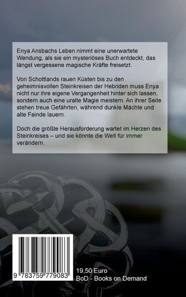 Enya Ansbachs Leben nimmt eine unerwartete Wendung, als sie ein mysteriöses Buch entdeckt, das längst vergessene magische Kräfte freisetzt. Von Schottlands rauen Küsten bis zu den geheimnisvollen Steinkreisen der Hebriden muss Enya nicht nur ihre eigene Vergangenheit hinter sich lassen, sondern auch eine uralte Magie meistern. An ihrer Seite stehen treue Gefährten, während dunkle Mächte und alte Feinde lauern. Doch die größte Herausforderung wartet im Herzen des Steinkreises - und sie könnte die Welt für immer verändern.