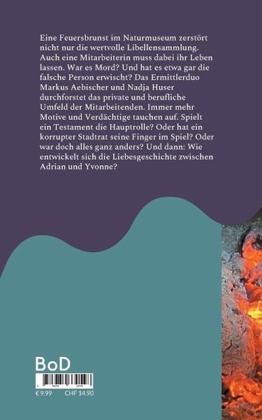 Eine Feuersbrunst im Naturmuseum zerstört nicht nur die wertvolle Libellensammlung. Auch eine Mitarbeiterin muss dabei ihr Leben lassen. War es Mord? Und hat es etwa gar die falsche Person erwischt? Das Ermittlerduo Markus Aebischer und Nadja Huser durchforstet das private und berufliche Umfeld der Mitarbeitenden. Immer mehr Motive und Verdächtige tauchen auf. Spielt ein Testament die Hauptrolle? Oder hat ein korrupter Stadtrat seine Finger im Spiel? Oder war doch alles ganz anders? Und dann: Wie entwickelt sich die Liebesgeschichte zwischen Adrian und Yvonne? Bleibt er ihr treu, oder vermag die andere Frau ihn seiner Verlobten wegzunehmen?