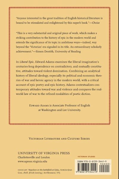 In Liberal Epic, Edward Adams examines the liberal imagination's centuries-long dependence on contradictory, and mutually constitutive, attitudes toward violent domination. Adams centers his ambitious analysis on a series of major epic poems, histories, and historical novels, including Dryden's Aeneid, Pope's Iliad, Gibbon's Decline and Fall of the Roman Empire, Byron's Don Juan, Scott's Life of Napoleon, Napier's History of the War in the Peninsula, Macaulay's History of England, Hardy's Dynasts, and Churchill's military histories-works that rank among the most important publishing events of the past three centuries yet that have seldom received critical attention relative to their importance. In recovering these neglected works and gathering them together as part of a self-conscious literary tradition here defined as liberal epic, Adams provides an archaeology that sheds light on contemporary issues such as the relation of liberalism to war, the tactics for sanitizing heroism, and the appeal of violence to supposedly humane readers.