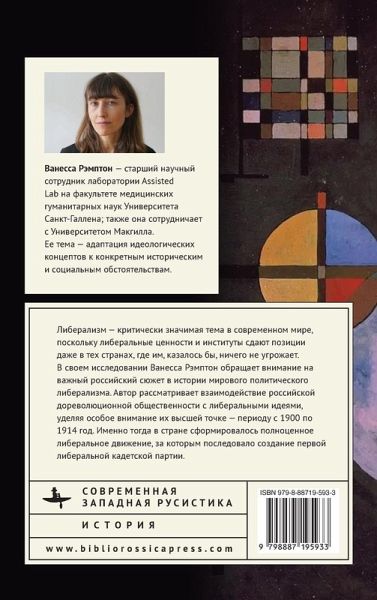 ENG Liberalism is a critically important topic in the contemporary world as liberal values and institutions are in retreat in countries where they seemed relatively secure. Lucidly written and accessible, this book offers an important yet neglected Russian aspect to the history of political liberalism. Vanessa Rampton examines Russian engagement with liberal ideas during Russia's long nineteenth century, focusing on the high point of Russian liberalism from 1900 to 1914. It was then that a self-consciously liberal movement took shape, followed by the founding of the country's first liberal (Constitutional-Democratic or Kadet) party in 1905. For a brief, revelatory period, some Russians - an eclectic group of academics, politicians and public figures - drew on liberal ideas of Western origin to articulate a distinctively Russian liberal philosophy, shape their country's political landscape, and were themselves partly responsible for the tragic experience of 1905. RUS Либерализм - критически значимая тема в современном мире, поскольку либеральные ценности и институты сдают позиции даже в тех странах, где им, казалось бы, ничего не угрожает. В своем исследовании Ванесса Рэмптон обращает внимание на важный российский сюжет в истории мирового политического либерализма. Автор рассматр