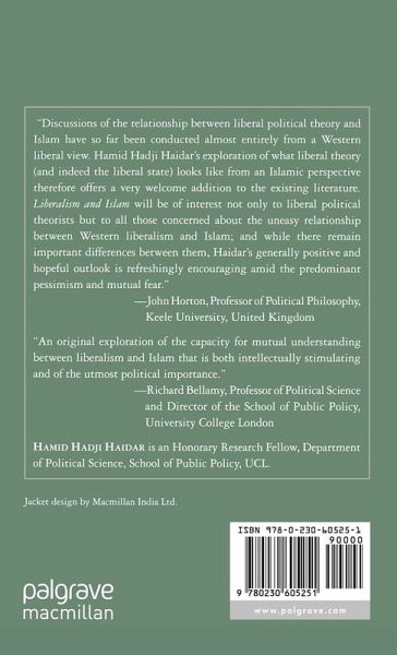 "Discussions of the relationship between liberal political theory and Islam have so far been conducted almost entirelyfrom aWestern liberal view. Hamid Hadji Haidar s exploration of what liberal theory (and indeed the liberal state)looks like from an Islamic perspective therefore offers avery welcomeaddition to the existingliterature. Liberalism and Islam will be of interest not only to liberal political theorists but to all those concerned about the uneasy relationship between Western liberalism and Islam; andwhile there remain important differences between them,Haidar s generally positive andhopeful outlook is refreshingly encouraging amidthe predominantpessimism and mutual fear." - John Horton, Professor of Political Philosophy, Keele University, United Kingdom