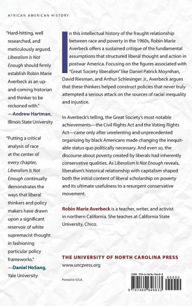 In this intellectual history of the fraught relationship between race and poverty in the 1960s, Robin Marie Averbeck offers a sustained critique of the fundamental assumptions that structured liberal thought and action in postwar America. Focusing on the figures associated with "Great Society liberalism" like Daniel Patrick Moynihan, David Riesman, and Arthur Schlesinger Jr., Averbeck argues that these thinkers helped construct policies that never truly attempted a serious attack on the sources of racial inequality and injustice. In Averbeck's telling, the Great Society's most notable achievements--the Civil Rights Act and the Voting Rights Act--came only after unrelenting and unprecedented organizing by black Americans made changing the inequitable status quo politically necessary. And even so, the discourse about poverty created by liberals had inherently conservative qualities. As Liberalism Is Not Enough reveals, liberalism's historical relationship with capitalism shaped both the initial content of liberal scholarship on poverty and its ultimate usefulness to a resurgent conservative movement.