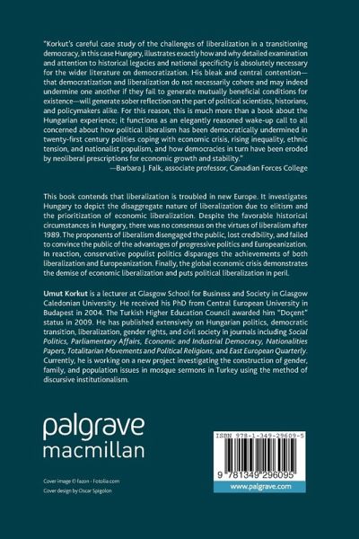 "Korkut's careful case study of the challenges of liberalization in a transitioning democracy, in this case Hungary, illustrates exactly how and why detailed examination and attention to historical legacies and national specificity is absolutely necessary to the wider literature on democratization. His bleak and central contention - that democratization and liberalization do not necessarily cohere and may indeed undermine one another if they fail to generate mutually beneficial conditions for existence - will generate sober reflection on the part of political scientists, historians, and policymakers alike. For this reason, this is much more than a book about the Hungarian experience; it functions as an elegantly reasoned wake-up call to all concerned about how political liberalism has been democratically undermined in 21st century polities coping with economic crisis, rising inequality, ethnic tension, and nationalist populism, and how democracies in turn have been eroded by neoliberal prescriptions for economic growth and stability." - Barbara J. Falk, associate professor, Canadian Forces College