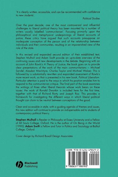 With an account of Rawls's "A Theory of Justice", this book gives presentations of the work of the main communitarians: Michael Sandel, Alisdair MacIntyre, Charles Taylor and Michael Walzer. With an agenda of themes and issues, it should be a useful aid to students of contemporary political theory.