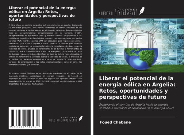 El libro ofrece un análisis exhaustivo del potencial eólico de Argelia, destacando su diversidad geográfica, que incluye condiciones de viento favorables en las regiones costeras y fuertes vientos en el desierto sahariano. Examina distintos tipos de aerogeneradores: aerogeneradores de eje horizontal (HAWT), aerogeneradores de eje vertical (VAWT) y modelos híbridos, adaptándolos a las condiciones específicas de las distintas regiones. Las zonas costeras son ideales para los HAWT, mientras que los VAWT son adecuados para regiones con vientos turbulentos, y el Sáhara requiere turbinas robustas o híbridas para soportar condiciones extremas. La metodología incluye la recopilación de datos sobre la velocidad del viento, pruebas de rendimiento de las turbinas y herramientas de simulación para la predicción de la producción energética. Los estudios de casos de diversas regiones ayudan a identificar los tipos de turbina más adecuados. El análisis de rendimiento y viabilidad abarca la velocidad del viento, la eficiencia de la turbina, los aspectos económicos (costes de instalación, mantenimiento, periodos de amortización) y los retos medioambientales como el polvo, las tormentas de arena y la corrosión.