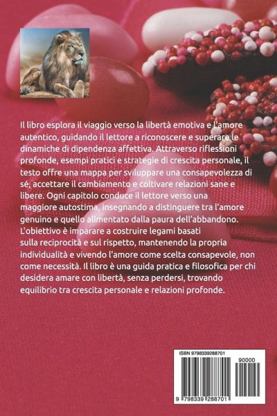 Liberarsi dalla Dipendenza Affettiva Un Viaggio di Consapevolezza, Autonomia e Amore Il libro esplora il viaggio verso la libertà emotiva e l'amore autentico, guidando il lettore a riconoscere e superare le dinamiche di dipendenza affettiva. Attraverso riflessioni profonde, esempi pratici e strategie di crescita personale, il testo offre una mappa per sviluppare una consapevolezza di sé, accettare il cambiamento e coltivare relazioni sane e libere. Ogni capitolo conduce il lettore verso una maggiore autostima, insegnando a distinguere tra l'amore genuino e quello alimentato dalla paura dell'abbandono. L'obiettivo è imparare a costruire legami basati sulla reciprocità e sul rispetto, mantenendo la propria individualità e vivendo l'amore come scelta consapevole, non come necessità. Il libro è una guida pratica e filosofica per chi desidera amare con libertà, senza perdersi, trovando equilibrio tra crescita personale e relazioni profonde.