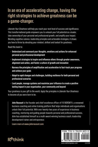 In an era of accelerating change, having the right strategies to achieve greatness can be a game-changer. Liberate Your Greatness will help you reach your next level of success and significance. This transformational guide empowers you to unleash your full potential as a leader, take ownership of your personal and professional growth, and amplify your impact. Blending cognitive science, leadership principles and actionable strategies, it shows you how to thrive by elevating your mindset, skillset and toolset for greatness. Read this book to: ¿ Understand and command your thoughts, emotions and actions for enhanced personal and professional development ¿ Implement strategies to inspire and influence others through greater awareness, alignment and action, and foster a culture of growth and innovation ¿ Harness the principles of amplification and acceleration to fast-track your progress and achieve your goals ¿ Adapt to rapid changes and challenges, building resilience for both personal and professional scenarios ¿ Lead people, manage systems and maximise your influence to create a positive lasting impact in your organisation, your community and beyond Your greatness is your gift to the world. Apply the principles in Liberate Your Greatness to become all you were born to be.