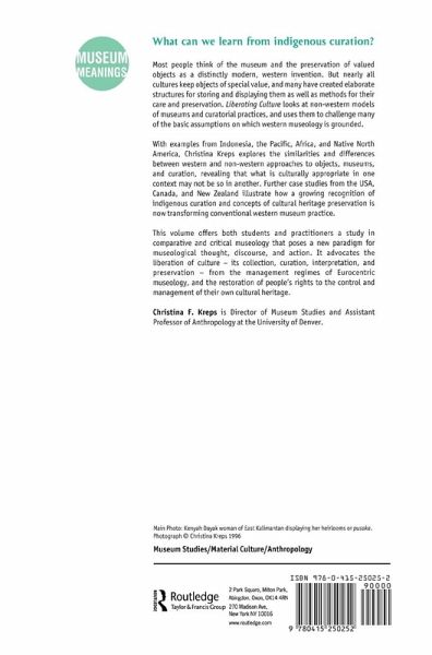 Using examples of indigenous models from Indonesia, the Pacific, Africa and Native North America, Kreps illustrate how the growing recognition of indigenous curation and concepts of cultural heritage preservation is transforming conventional museum practice. She explores the similarities and differences between western and non-western approaches to objects, museums, and curation, revealing how what is culturally appropriate in one context may not be in another. The book also undermines the argument that non-western people are not concerned with preserving their cultural property - an argument that has been used to justify its collection and retention in museums.