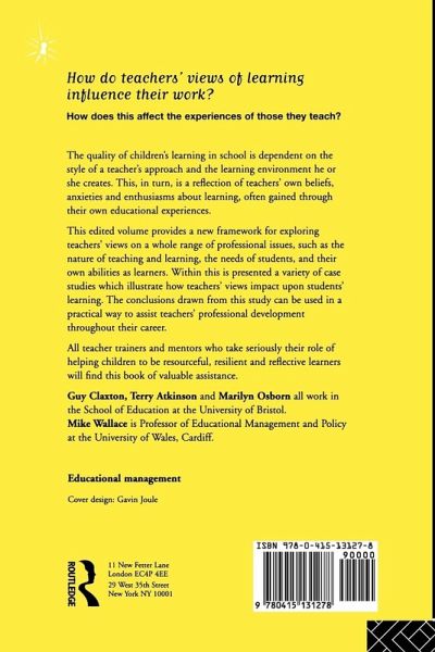 There is clear evidence that the quality of children's learning in school is very dependant on the style of the teacher's approach and the learning environment he or she creates. This, in turn, is a reflection of teachers own beliefs, anxieties and enthusiasms about learning, often gained through their own educational experiences. This edited volume provides a new framework for exploring teachers' views on a whole range of professional issues, for instance the nature of teaching and learning, the needs of students, and their own abilities as learners. Within this is presented a variety of case studies which illustrate how teachers' views impact upon students' learning. The book builds on the well established assumption that teachers are themselves also learners and that the learning processes involved in professional development are in many ways the same as those involved in a classroom context.It shows how the conclusions drawn from this study can be used in a practical way to assist teachers' professional development throughout their career. All teacher trainers and mentors who take seriously their role of helping children to be resourceful, resilient and reflective learners will find that this book helps them to achieve this aim.