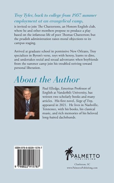 In Liberating Troy, a sequel to the author's Siege of Troy, protagonist Troy Tyler resumes his education at Louisiana Christian College (LCC) and then begins graduate training at Tulane University, there facing new academic, social and sexual challenges with the same intensity and wit he showed in the previous novel. ¿ Professor Royal, his smart but wacky teacher, recruits Troy and two boyfriends into an Honors English club, The Chattertons. The boys collaborate on a drama relocating to San Francisco the short, disreputable life of poet "Tommy" Chatterton; but college authorities ban production and penalize the authors for the play's offensive use of Beat Generation language and behavior. Troy's minister-father also protests. The scandal popularizes the boys, who become the brightest literary lights on campus. Graduated, they re-unite in New Orleans, Troy and Jack for advanced literary study at Tulane, Ben to repair Harleys, write poetry, and volunteer at Le Petit Theatre. They mix with Kaiden, Troy's pal from an evangelical camp and now roomie and partner. Monte, Troy's roommate from the camp and now a USAF fighter-jet pilot, visits and confesses attractions to Troy. Le Petit expresses interest in producing the suppressed Chatterton play, rekindling family problems it had earlier occasioned. Professional rivalries, family conflicts, and interpersonal tensions complicate relationships; academia, affections, lifestyles, entertainments -- Mardi Gras, the Quarter, the River, the clubs -- perplex Troy's efforts to reconcile the hunger of his mind with the yearnings of his heart, but also create surprising opportunities and wondrous adventures. Through brooding introspection, satiric wit, and relatable themes, this beautifully crafted novel tracks a maturing writer's discovery that the achievement of personal liberation is an evolving task, problematic and incomplete, challenging and hopeful.