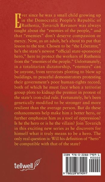 Ever since he was a small child growing up in the Democratic People's Republic of Ruthenia, Tovarich Revanov was always taught about the "enemies of the people," and that "enemies" don't deserve compassion or mercy. Now, as an adult, he's about to put that lesson to the test. Chosen to be "the Liberator," he's the state's newest "official state-sponsored hero," here to protect the workers of Ruthenia from the "enemies of the people." Unfortunately, in a totalitarian dictatorship, "enemies" can be anyone, from terrorists plotting to blow up buildings, to peaceful demonstrators protesting their government's poor human-rights record, both of which he must face when a terrorist group plots to kidnap the premier in protest of the state's iron-clad rule. Fortunately, he's been genetically modified to be stronger and more resilient than the average person. But do these enhancements help make him a better hero, or further emphasize him as a tool of oppression? Is he the hero or is he the villain? Join Tovarich in this exciting new series as he discovers for himself what it truly means to be a hero. The only real question is: Will his definition of "hero" be compatible with that of the state?