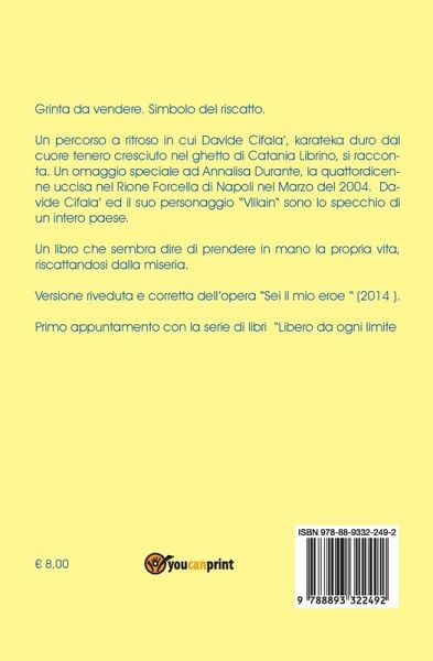 Un percorso a ritroso in cui Davide Cifalà, karateka duro dal cuore tenero cresciuto nel ghetto di Catania Librino, si racconta. Un omaggio speciale ad Annalisa Durante, la quattordicenne uccisa nel Rione Forcella di Napoli nel Marzo del 2004. Davide Cifalà ed il suo personaggio "Villain" sono lo specchio di un intero paese. Un libro che sembra dire di prendere in mano la propria vita, riscattandosi dalla miseria. Versione riveduta e corretta dell'opera "Sei il mio eroe" (2014).
