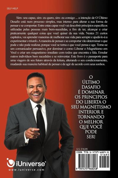 Sim- sou capaz, Sim-eu quero, Sim- eu consigo ... a intenção de O Último Desafio está num processo simples, mas intenso para alterar a sua forma de pensar e se comportar. Entre estas capas você vai descobrir princípios específicos utilizadas pelas pessoas mais bem-sucedidas, a fim de ter, alcançar e criar praticamente qualquer coisa que você quiser da sua vida. Nestes 21 curtos capítulos, vai aprender maneiras de melhorar sua vida para sempre e ajudá-lo-á a experimentar o triunfo. A maneira de pensar e se comportar vão determinar o que pode e não pode realizar, porque você se torna o que você pensa e age. Torne-se um comunicador persuasivo, por dominar o como Liberar o Magnétismo em Você e criar um magnetismo imediato com todos que encontra e fala. Emular outros indivíduos bem sucedidos e se reinventar. Este livro é o passaporte para uma viagem de seu futuro através da leitura, alterando o seu condicionamento, mudando sua maneira habitual de pensar e de agir de acordo com seus sonhos.