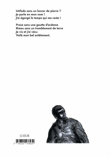 Intifada sans un lancer de pierre ? Je parle en mon nom J'ai égorgé le temps qui me reste Dans l'épopée folle d'une seconde atroce. Prose sans une goutte d'acétone Rimes sans un tremblement de terre Je vis et j'ai vécu Voilà mon bel entêtement.