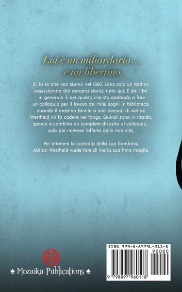 Lui è un miliardario... e un libertino. Sì, lo so che non siamo nel 1800. Sono solo un tantino ossessionata dai romanzi storici, tutto qui. E dai libri in generale. È per questo che sto andando a fare un colloquio per il lavoro dei miei sogni in biblioteca, quando il mastino (simile a una pecora) di Adrian Westfield mi fa cadere nel fango. Quindi sono in ritardo, sporca e combino un completo disastro al colloquio... solo per ricevere l'offerta della mia vita. Per ottenere la custodia della sua bambina, Adrian Westfield vuole fare di me la sua finta moglie.