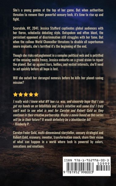 She's a young genius at the top of her game. But when authorities threaten to remove their powerful sensory tech, it's time to rise up and fight. Scarsdale, NY, 2041. Jessica Stafford captivates global audiences with her fierce, scholastic debating style. Outspoken and often blunt, the persistent opponent of discrimination still struggles with her fame. But when the callous World Chancellor threatens to disable all superhuman neuro implants, she's terrified it's the beginning of the end. Though she risks entanglement in a complex political web and is petrified of the ensuing media frenzy, Jessica embarks on a grand vision to repair the planet. But up against liars, bullies, and vested interests, she'll need to act quickly before all hope is lost. Will she outwit her deranged nemesis before he kills her planet-saving mission? Liberty 2041 Episode 1: Threat Of Darkness is the compelling first entry in the speculative literary science fiction series, delving into the power of emotions, sensations, and colors. If you like brilliant heroines, thought-provoking scenarios, and futuristic sensory technology, then you'll love Carolyn & Robert Gold's transformative novella. Buy Liberty 2041 Episode 1: Threat Of Darkness to fight back against tyranny today!