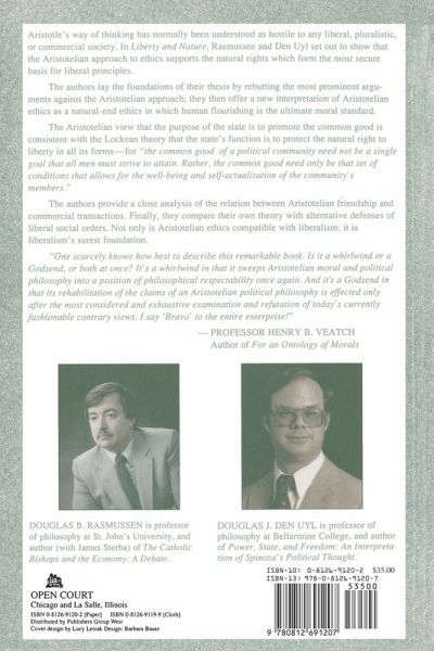 Aristotle's way of thinking has normally been understood as hostile to any liberal, pluralistic, or commercial society. In Liberal Nature, Rasmussen and Den Uyl set out to show that the Aristotelian approach to ethics supports the natural rights which form the most secure basis for liberal principles. The authors lay the foundations for their thesis by rebutting the most prominent arguments against the Aristotelian approach; they then offer a new interpretation for Aristotelian ethics as a natural-end ethics in which human flourishing is the ultimate moral standard.