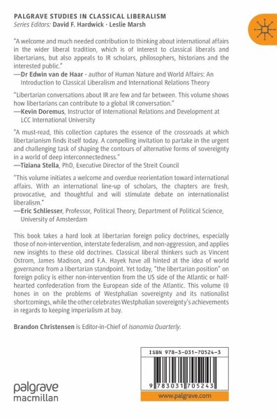 This book takes a hard look at libertarian foreign policy doctrines, especially those of non-intervention, interstate federalism, and non-aggression, and applies new insights to these old doctrines. Classical liberal thinkers such as Vincent Ostrom, James Madison, and F.A. Hayek have all hinted at the idea of world governance from a libertarian standpoint. Yet today, "the libertarian position" on foreign policy is either non-intervention from the US side of the Atlantic or half-hearted confederation from the European side of the Atlantic. This volume (I) hones in on the problems of Westphalian sovereignty and its nationalist shortcomings, while the other celebrates Westphalian sovereignty's achievements in regards to keeping imperialism at bay.