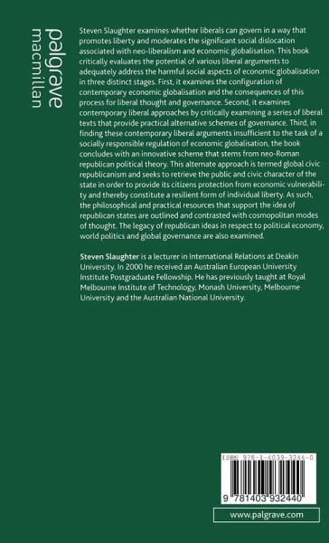 Under the conditions of economic globalization, the prevailing liberal philosophy of governance is becoming increasingly problematic. Liberty Beyond Neo-Liberalism critiques three varieties of liberal engagement with the processes of globalization and their ability to temper the harmful effects of the process. Steven Slaughter proposes an alternate approach, global civic republicanism, which seeks to retrieve the civic and public character of the state in order to protect it from economic vulnerability and to constitute a resilient form of liberty.