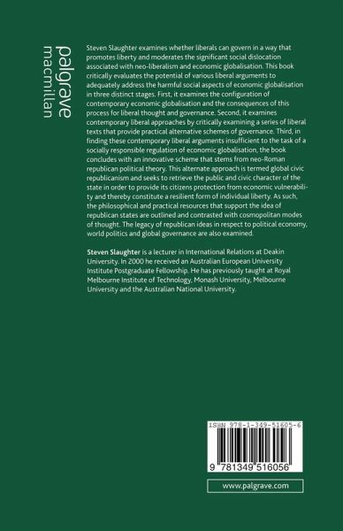 Under the conditions of economic globalization, the prevailing liberal philosophy of governance is becoming increasingly problematic. Liberty Beyond Neo-Liberalism critiques three varieties of liberal engagement with the processes of globalization and their ability to temper the harmful effects of the process. Steven Slaughter proposes an alternate approach, global civic republicanism, which seeks to retrieve the civic and public character of the state in order to protect it from economic vulnerability and to constitute a resilient form of liberty.