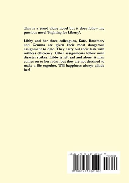 This is a stand alone novel but it does follow my previous novel 'Fighting for Liberty'. Libby and her three colleagues, Kate, Rosemary and Gemma are given their most dangerous assignment to date. They carry out their task with ruthless efficiency. Other assignments follow until disaster strikes. Libby is left sad and alone. A man comes on to her radar, but they are not destined to make a life together. Will happiness always allude her?