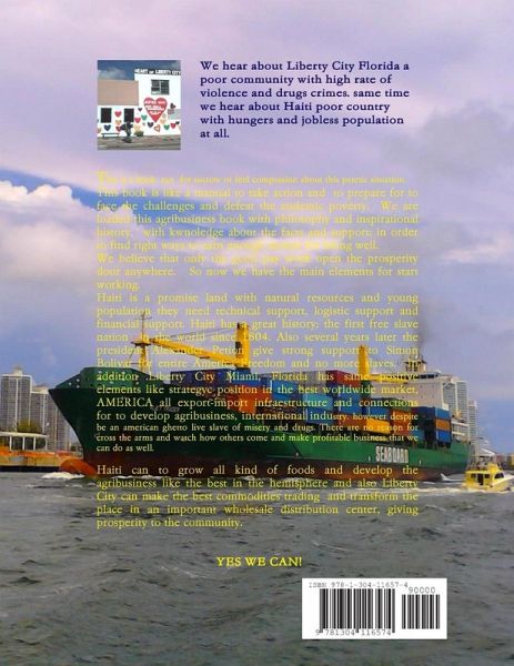 This book is a great opportunity for people looking for new business to find a fertile land for prosperity and to generate jobs for youth in Haiti and also Liberty City florida. Agriculture and Agribusiness is the great potential for these poor communities. After visiting Haitian land, my Agronomist background has been put to work in this book developing a great new opportunity for all people; so money, logistic, market and consumers are here ready Just we need start working 100%% I give everyone the knowhow initiating from the scraps but in the right way and this right way is the cooperative system where all members become essencial elements for to build the organization does not matter their economic situation just is critical his work potential and performance at all. HAITI WILL BE LEADERSHIP AGAIN FOR DEFEAT THE WORLDWIDE POVERTY Visit the blog www.libertyhaititrading.blogspot.com Yes we can do it thanks to you!