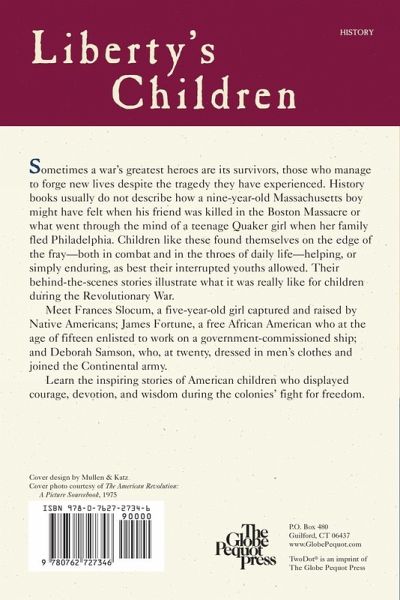 When Americans think about the American Revolution, certain names come quickly to mind--George Washington, Paul Revere, and Samuel Adams. These men deserve to be remembered, yet their stories do not give us a clear picture of what life was like for the average person during the years before, during, and immediately after the war. Typical history books do not describe how a nine-year-old Massachusetts boy might have felt when his friend was killed in the Boston Massacre or what went through the mind of a teenage Quaker girl when her family fled Philadelphia. These are the kinds of stories you will find in this book. Many of these children not only survived the war but played an active role in it.