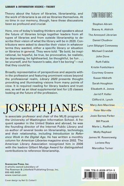 Broadly representative of important perspectives and aspects within the profession as well as featuring important voices beyond the professional realm, Library 2020 presents thought-provoking and illuminating visions from many points of view. It is both required reading for library leaders and trustees as well as an ideal supplemental text for LIS classes looking at the future of the profession.