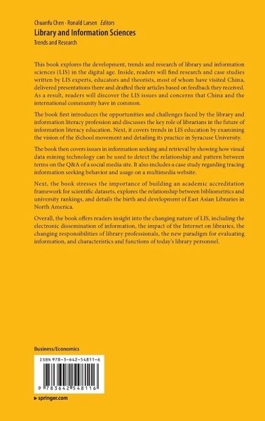 This book explores the development, trends and research of library and information sciences (LIS) in the digital age. Inside, readers will find research and case studies written by LIS experts, educators and theorists, most of whom have visited China, delivered presentations there and drafted their articles based on feedback they received. As a result, readers will discover the LIS issues and concerns that China and the international community have in common.