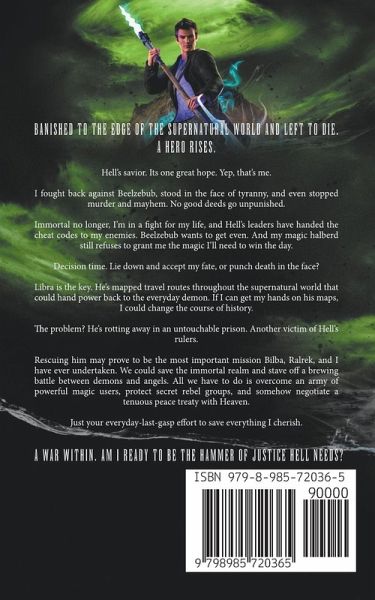 Banished to the edge of the supernatural world and left to die. A hero rises. Hell's savior. Its one great hope. Yep, that's me. I fought back against Beelzebub, stood in the face of tyranny, and even stopped murder and mayhem. No good deeds go unpunished. Immortal no longer, I'm in a fight for my life, and Hell's leaders have handed the cheat codes to my enemies. Beelzebub wants to get even. And my magical halberd still refuses to grant me the power I'll need to win the day. Decision time. Lie down and accept my fate, or punch death in the face? Libra is the key. He's mapped travel routes throughout the supernatural world that could hand power back to the everyday demon. If I can get my hands on his maps, I could change the course of history. The problem? He's rotting away in an untouchable prison. Another victim of Hell's rulers. Rescuing him may prove to be the most important mission I have ever undertaken. I could save the immortal realm and stave off a brewing battle between demons and angels. All I have to do is overcome an army of powerful magic users, protect secret rebel groups, and somehow negotiate a tenuous peace treaty with Heaven. Just your everyday-last-gasp effort to save everything I cherish. A war within. Am I ready to be the hammer of justice Hell needs?